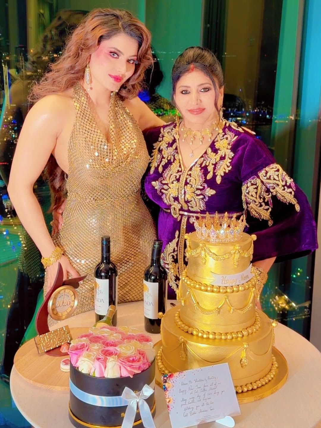वीडियो और फोटो शेयर करते हुए उर्वशी रौतेला ने लिखा, 'मां का जन्मदिन दुनिया के सबसे ऊंचे होटल में 24 कैरेट गोल्ड क्राउन केक के साथ मनाया.'