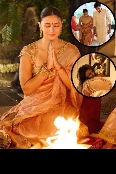 आलिया ने अपने लुक को कंप्लीट करने के लिए टेंपल जूलरी कैरी की. उन्होंने कानों में बड़े-बड़े इयररिंग्स और हाथों में चौड़े-चौड़े कड़े और अंगूठी पहनीं.