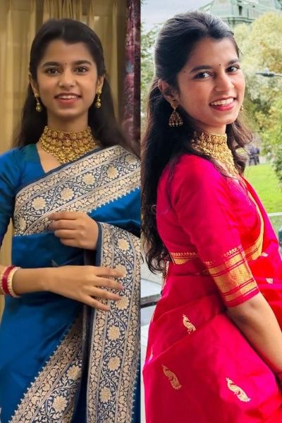 गोल्डन टिशू साड़ी के साथ कंट्रास्ट लाल ब्लाउज में तो मैथिली बिल्कुल रानी लग रही हैं. उन्होंने गोल्डन जूलरी से अपने लुक में चार चांद लगाए हैं.