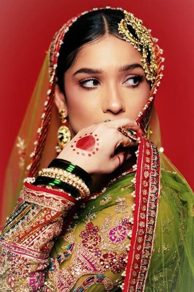 ऑलीव ग्रीन कलर के शरारा के साथ उन्होंने गोल्डन कलर का मांग टीका, पासा और हैवी जूलरी पही है, जो उनके लुक को पूरा मुगलई टच दे रहा है.