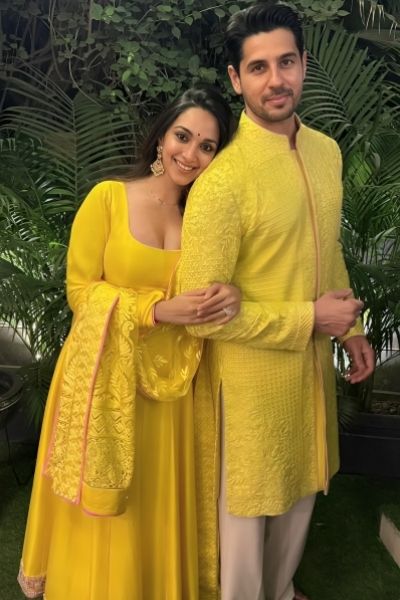 सिद्धार्थ ने पत्नी के साथ ट्विनिंग की और मनीष मल्होत्रा का पीले रंग का कस्टमाइज्ड चिकनकारी कुर्ता और वाइट पायजामा पहन हैंडसम लगे.