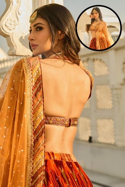 मौनी ने ऑरेंज कलर का लहंगा-चोली पहन रखा है,जिसका फैब्रिक सिल्क का है. फैशन डिजाइनर ऋतु कुमार के इस शानदार लहंगा-चोली में मौनी बहुत सुंदर लग रही हैं.