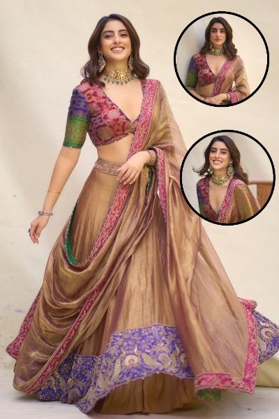 नव्या नंदा ने अपने लेटेस्ट लुक के लिए Mayyur Girotra Couture का खूबसूरत लहंगा पहना. लहंगे का बेस टोन मिट्टी जैसे ब्राउन और गोल्डन शेड में है, जो इसे बेहद सॉफ्ट और एलिगेंट बनाता है.
