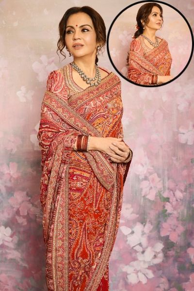 नीता अंबानी के ब्लाउज के बैक पर जामेवर का खूबसूरत डिजाइन था, जो इसे और भी शानदार बना रहा था. उन्होंने साड़ी के पल्लू को पीछे कमर की तरफ से लाकर हाथ पर ड्रेप किया हुआ था.
