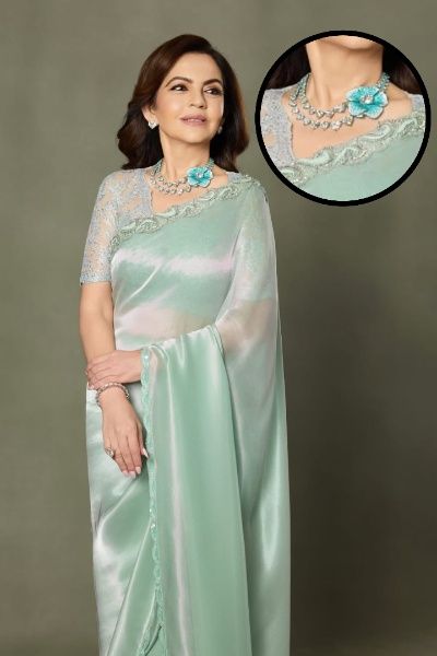 हमेशा की तरह नीता ने साड़ी के साथ एक दम अलग और खास नेकलेस कैरी किया. नीता ने टू लेयर डायमंड नेकलेस पहना था, जो पाराइबा जेम्स से बना था.