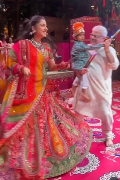 अंबानी परिवार ने एंटीलिया में गरबा नाइट रखी थी, जिसमें पूरे परिवार ने पारंपरिक गुजराती कपड़े पहने, जमकर डांडिया खेला और मस्ती की.