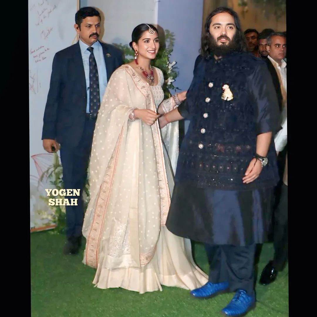 इवेंट में पहुंची राधिका मर्चेंट ने बेहद सुंदर आइवरी लहंगा सेट पहना था. वहीं, अनंत ने नीले रंग का शेरवानी सेट पहना हुआ था.