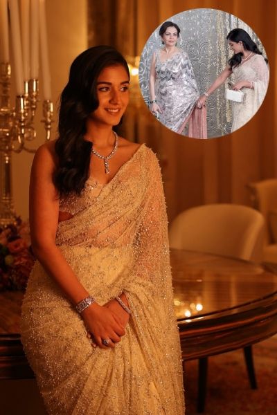 राधिका की एंट्री जितनी शानदार थी उतना ही शानदार उनकी साड़ी थी. जी हां, दिवाली पार्टी के लिए राधिका ने मनीष मल्होत्रा द्वारा डिजाइन की गई आइवरी (ऑफ-वाइट) कलर की साड़ी पहनी, जिसमें पुराने जमाने की सुंदरता और आज के समय की शान दोनों झलक रही थीं.