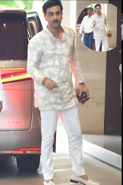 रणबीर को जैकी-रकुल के घर के बाहर स्पॉट किया गया. उन्होंने लाइट ग्रे कलर का शॉर्ट कुर्ता पहना हुआ था, जिस पर वाइट कलर की पत्तियों वाला प्रिंट था.