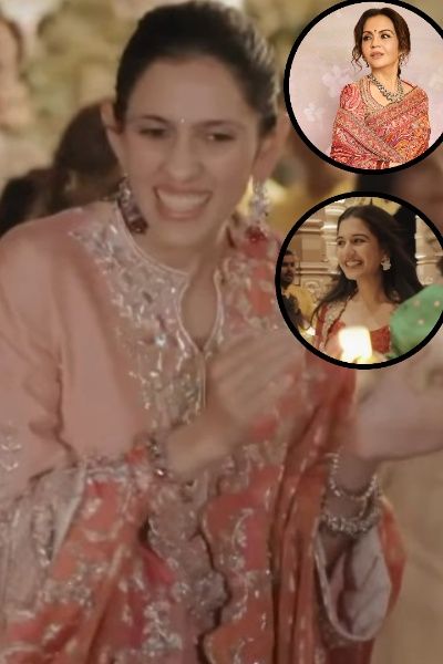 श्लोका पीच और ऑरेंज के कॉम्बिनेशन वाले शानदार सूट में नजर आईं, जो सभी अंबानी लेडीज को टक्कर देता हुआ दिख रहा था.