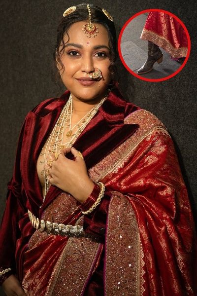 स्वरा ने न सिर्फ जैकेट पर साड़ी पहनी थी, बल्कि उन्होंने इसके साथ ही पैरों में काउबॉय बूट्स भी पहने थे. जो उनके इस फ्यूजन लुक को सबसे हटकर बना रहे थे.