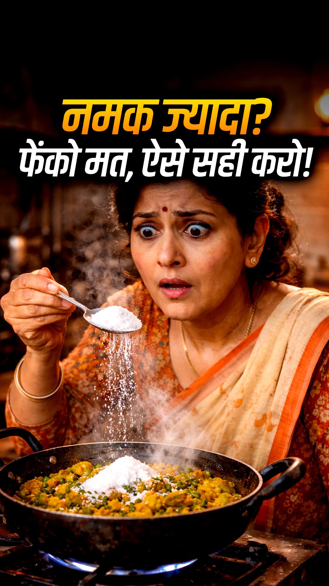 1. बेसन डालें: अगर आलू, गोभी, भिंडी या किसी भी तरह की सूखी सब्जी में नमक ज्यादा हो गया है, तो उसमें 1–2 चम्मच बेसन डाल दें, ध्यान रखें कि बेसन सीधे डालने के बाद सब्जी को धीमी आंच पर 2–3 मिनट तक अच्छे से भूनें.