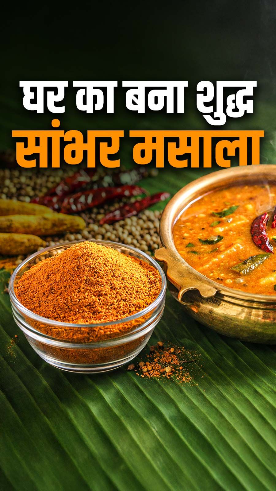 सूखी लाल मिर्च, चना दाल, उरद दाल, मेथी, जीरा, काली मिर्च, हींग, करी पत्ता और हल्दी से 15 मिनट में ताज़ा और खुशबूदार सांभर मसाला बना सकते हैं.
