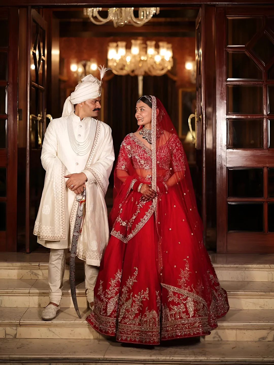 IPS अंशिका वर्मा ने अपनी शादी के लिए क्लासिक लाल रंग का लहंगा चुना. भारी गहनों और माथे पर सजी बिंदिया के साथ उनका लुक किसी राजकुमारी से कम नहीं लग रहा था.