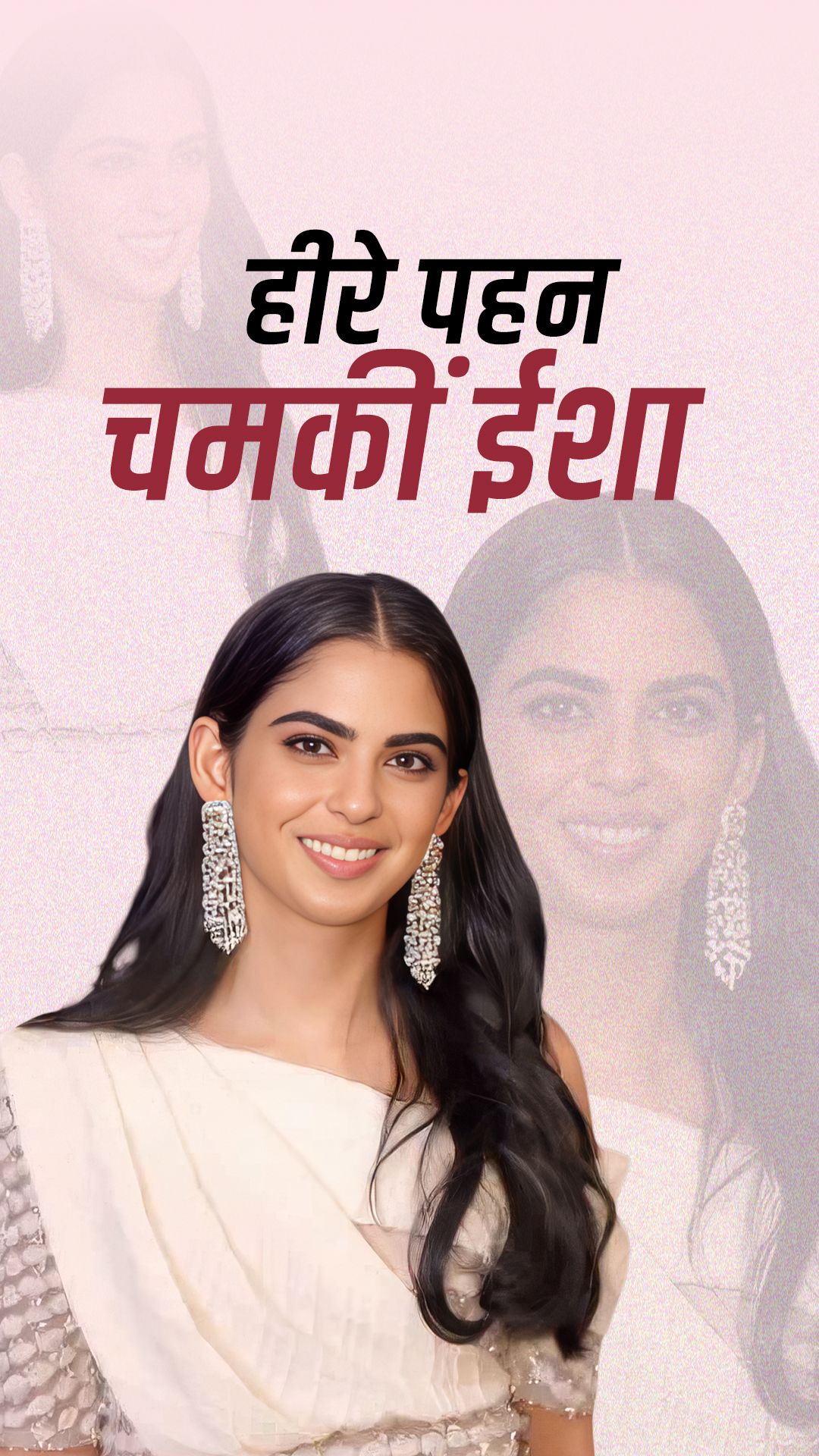 अगर ईशा का गाउन क्लासी था, तो जूलरी बहुत रॉयल थी. ईशा ने डायमंड झूमर इयररिंग्स पहने थे, जिनमें बड़े एमराल्ड-कट डायमंड सेंटरस्टोन लगे थे.