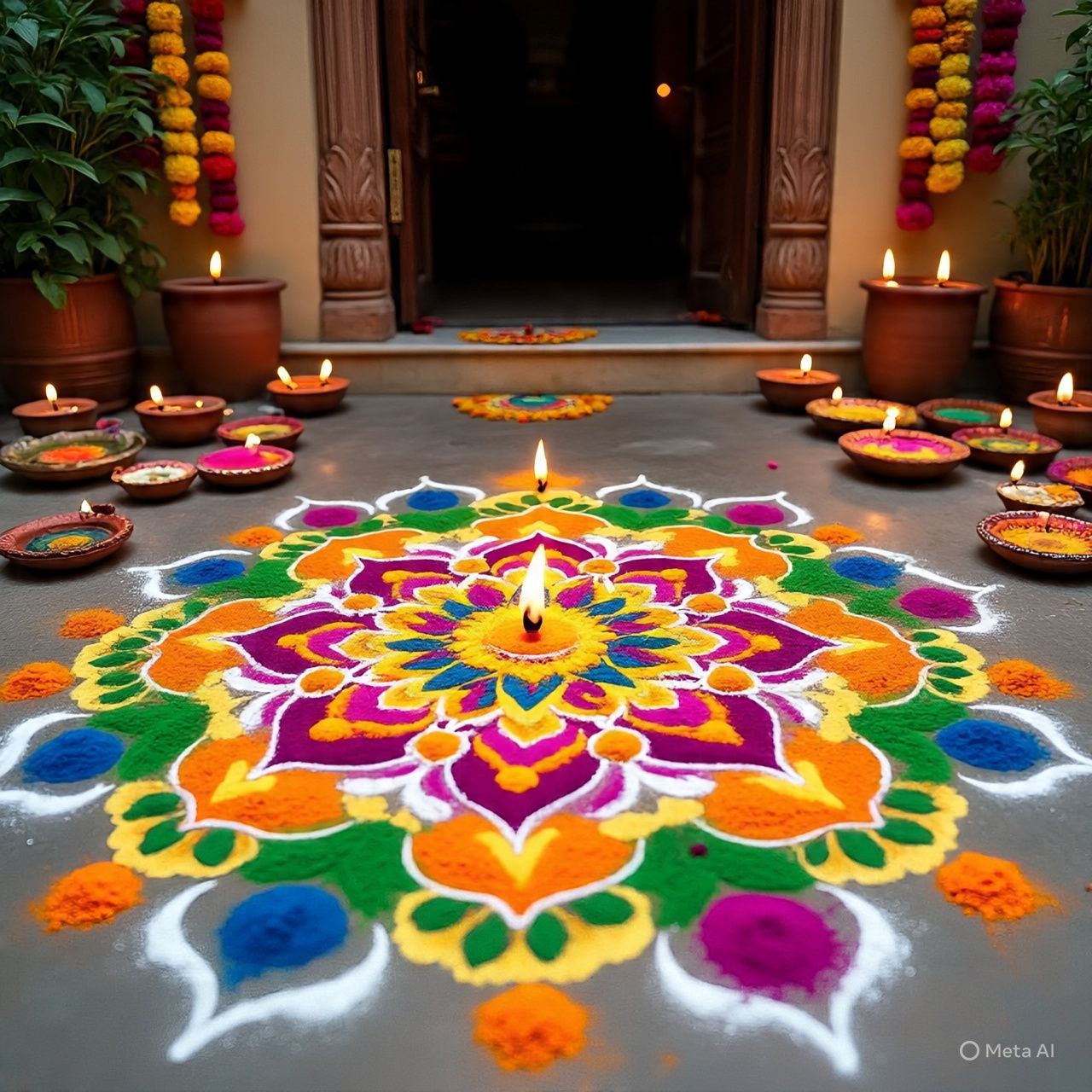 दिवाली के दिन रंगोली बनाना एक पुरानी परंपरा है जो समृद्धि और सौभाग्य का प्रतीक मानी जाती है.रंगोली न सिर्फ सजावट का हिस्सा है, बल्कि यह भारतीय संस्कृति की खूबसूरत झलक भी दिखाती है.