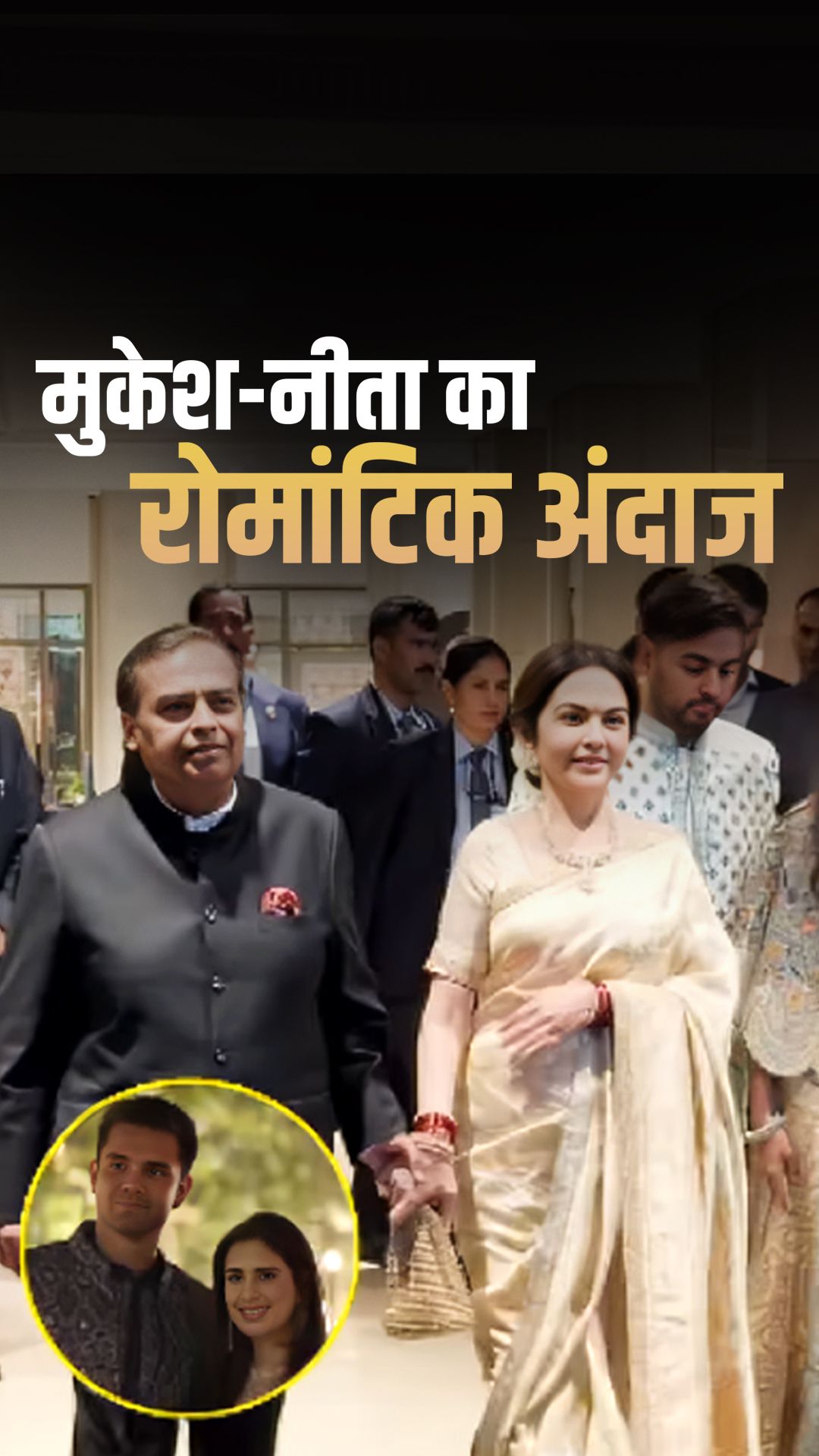 भारत के सबसे अमीर बिजनेसमैन मुकेश अंबानी अपनी पत्नी नीता अंबानी का हाथ थामे वेडिंग वेन्यू पर पहुंचे. दोनों के इस प्यार भरे अंदाज का वीडियो सोशल मीडिया पर तेजी से वायरल हो रहा है.