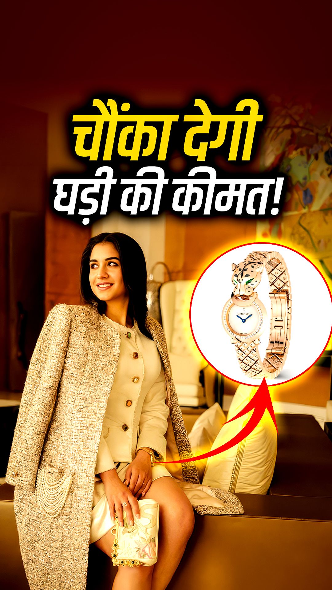 अपने लुक को कंप्लीट करने के लिए राधिका ने लग्जरी ब्रांड Cartier की La Panthère de Cartier घड़ी पहनी थी. इस खूबसूरत घड़ी की चेन स्ट्रैप को खास पैंथर डिजाइन में तैयार किया गया है, जो इसे बेहद यूनिक और रॉयल लुक देता है.