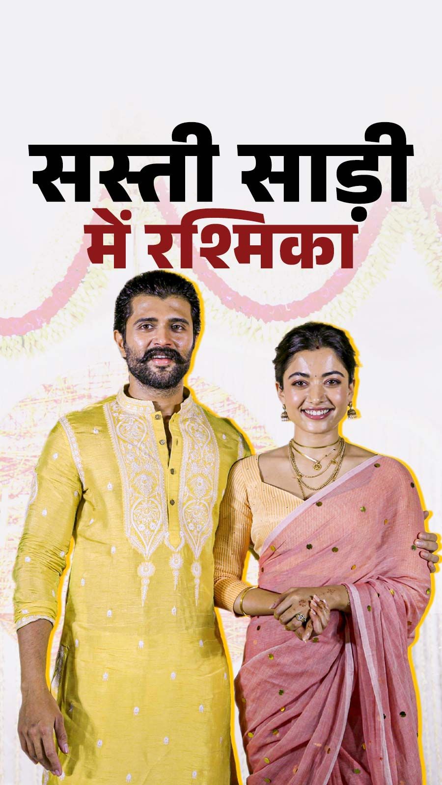 इस दौरान जहां विजय अपने सिंपल लेकिन स्टाइलिश लुक में नजर आए, वहीं नई दुल्हन रश्मिका ने ऐसी साड़ी पहन ली जिसकी कीमत सुनकर हर कोई हैरान रह गया.