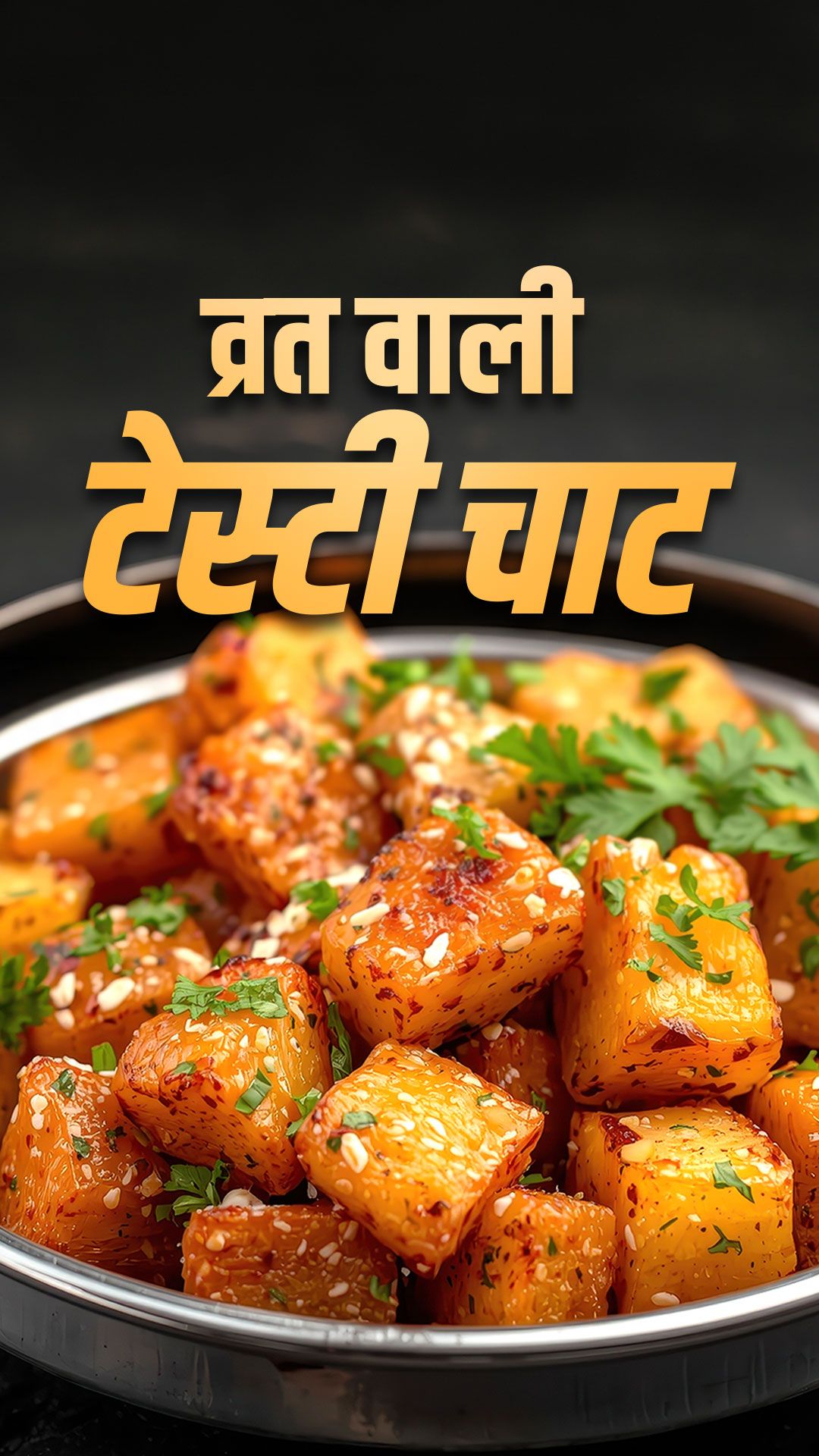 आपकी झटपट शकरकंद चाट तैयार है. इसे ताजे हरे धनिए से सजाकर सर्व करें.