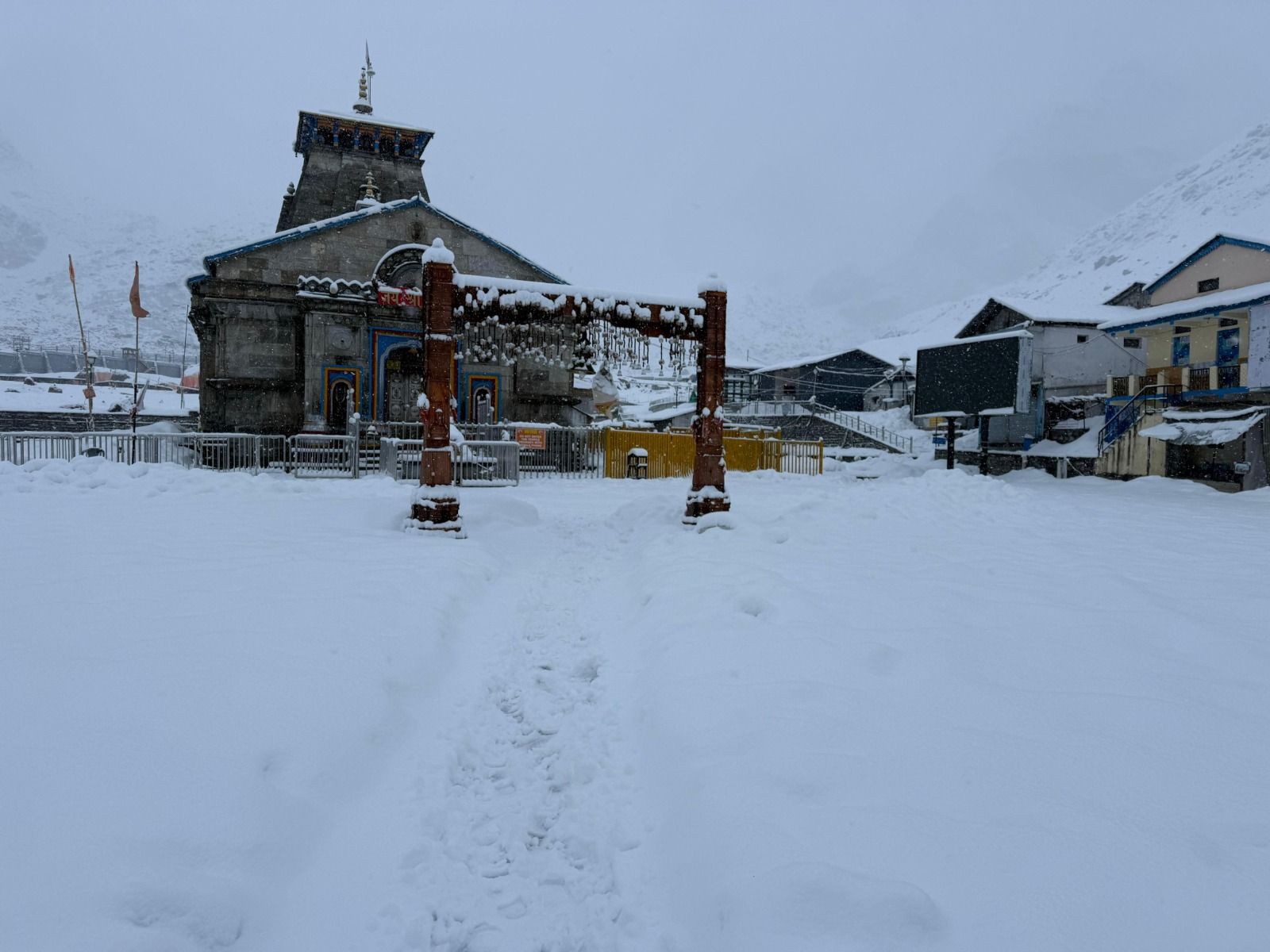 केदारनाथ धाम में जमकर बर्फबारी, सफेद हुआ मंदिर परिसर