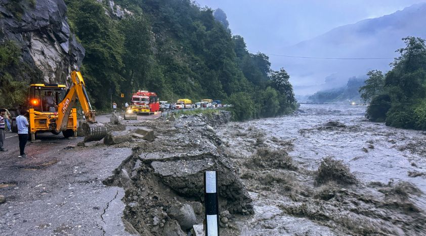 भारी बारिश के चलते व्यास नदी उफान पर है. कुल्लू-मनाली-लेह एनएच 3 कई जगह से टूट चुका है.