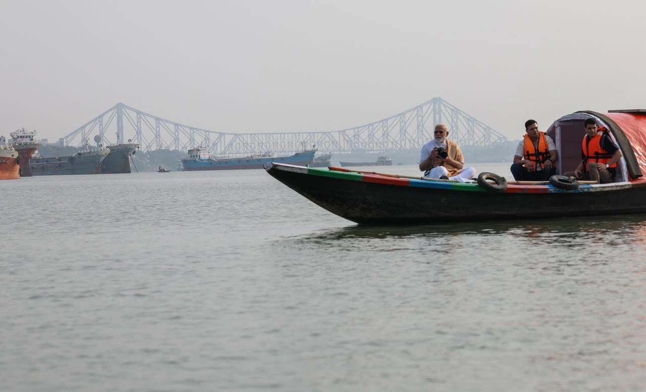 पीएम मोदी ने हुगली नदी में बोटिंग की और नाव में बैठकर सुंदर नजारे देखे.
