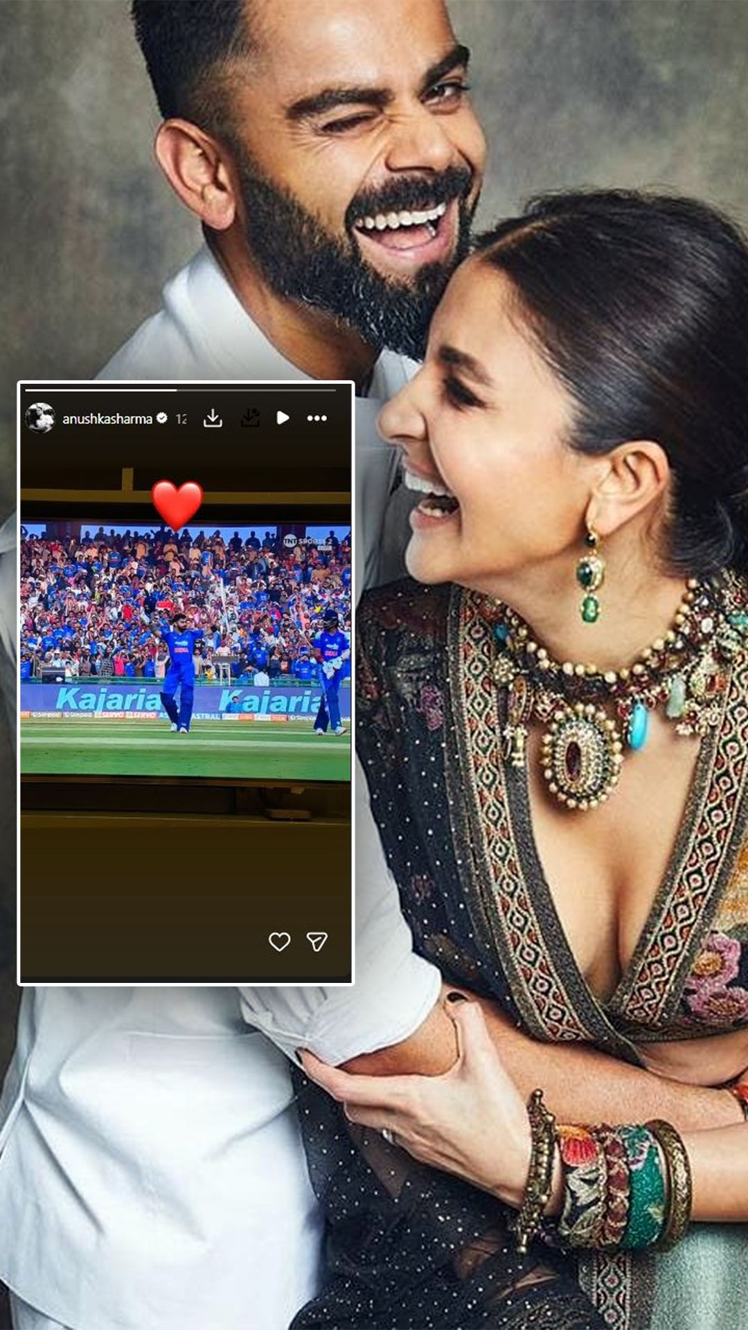 कोहली पर प्यार दिखाते हुए अनुष्का ने हार्ट इमोजी अपने इंस्टा स्टोरी शेयर की.