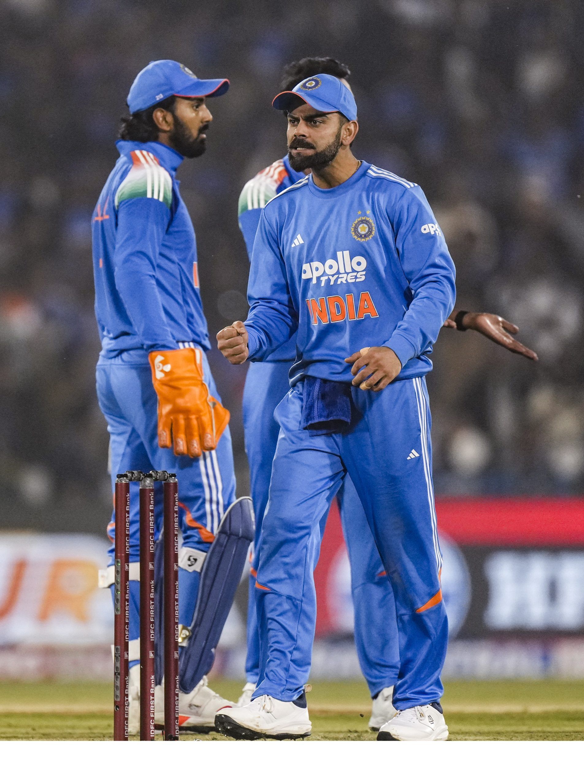 तीसरे वनडे में भारत की प्लेइंग XI: रोहित शर्मा, यशस्वी जायसवाल, विराट कोहली, ऋतुराज गायकवाड़, तिलक वर्मा, केएल राहुल (विकेटकीपर/कप्तान), रवींद्र जडेजा, हर्षित राणा, कुलदीप यादव, अर्शदीप सिंह और प्रसिद्ध कृष्णा.