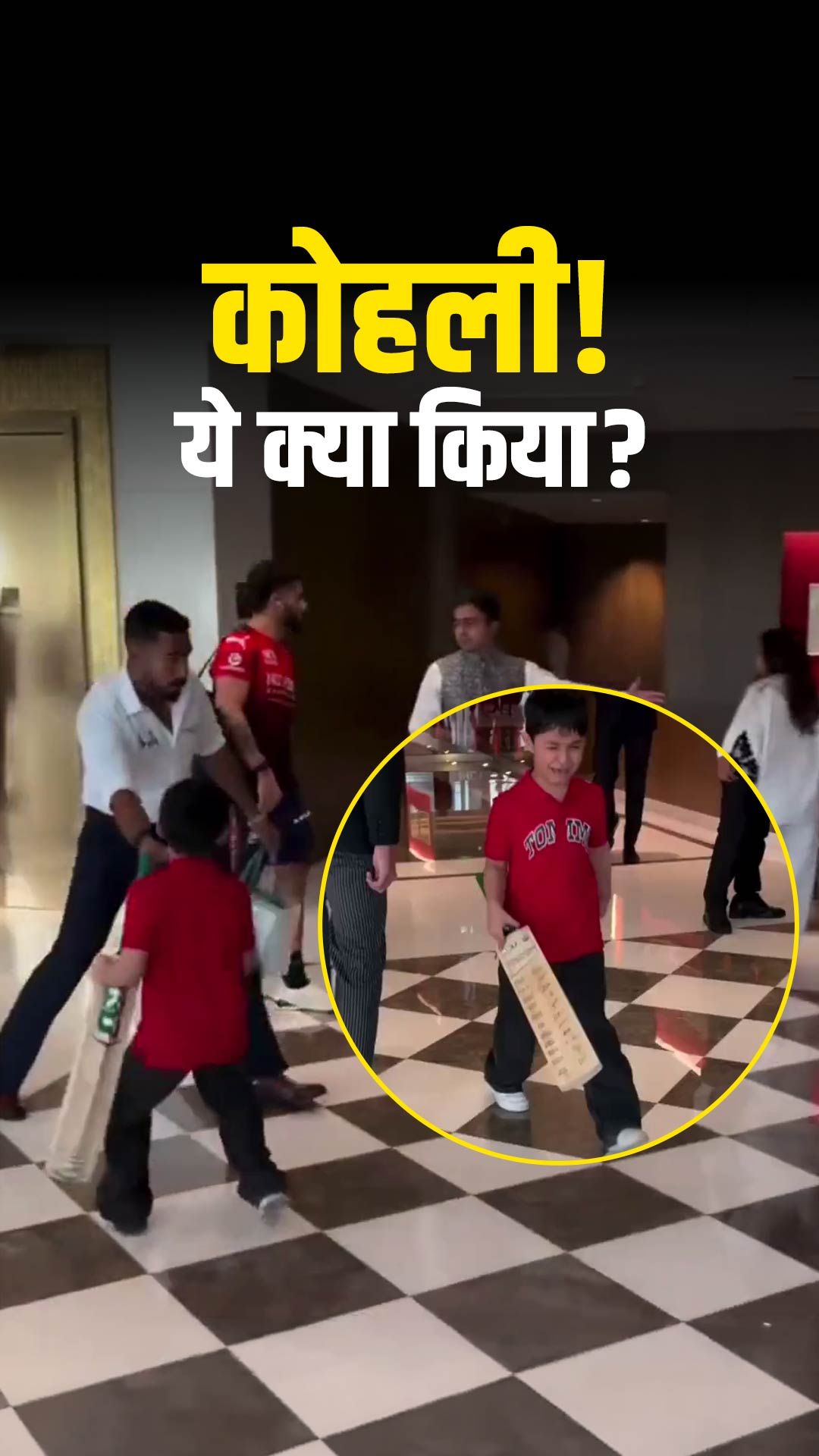 जैसे ही रॉयल चैलेंजर्स बेंगलुरु के स्टार खिलाड़ी कोहली अपनी टीम और सिक्योरिटी स्टाफ के साथ होटल पहुंचे, बच्चा तुरंत उनकी ओर बढ़ा.