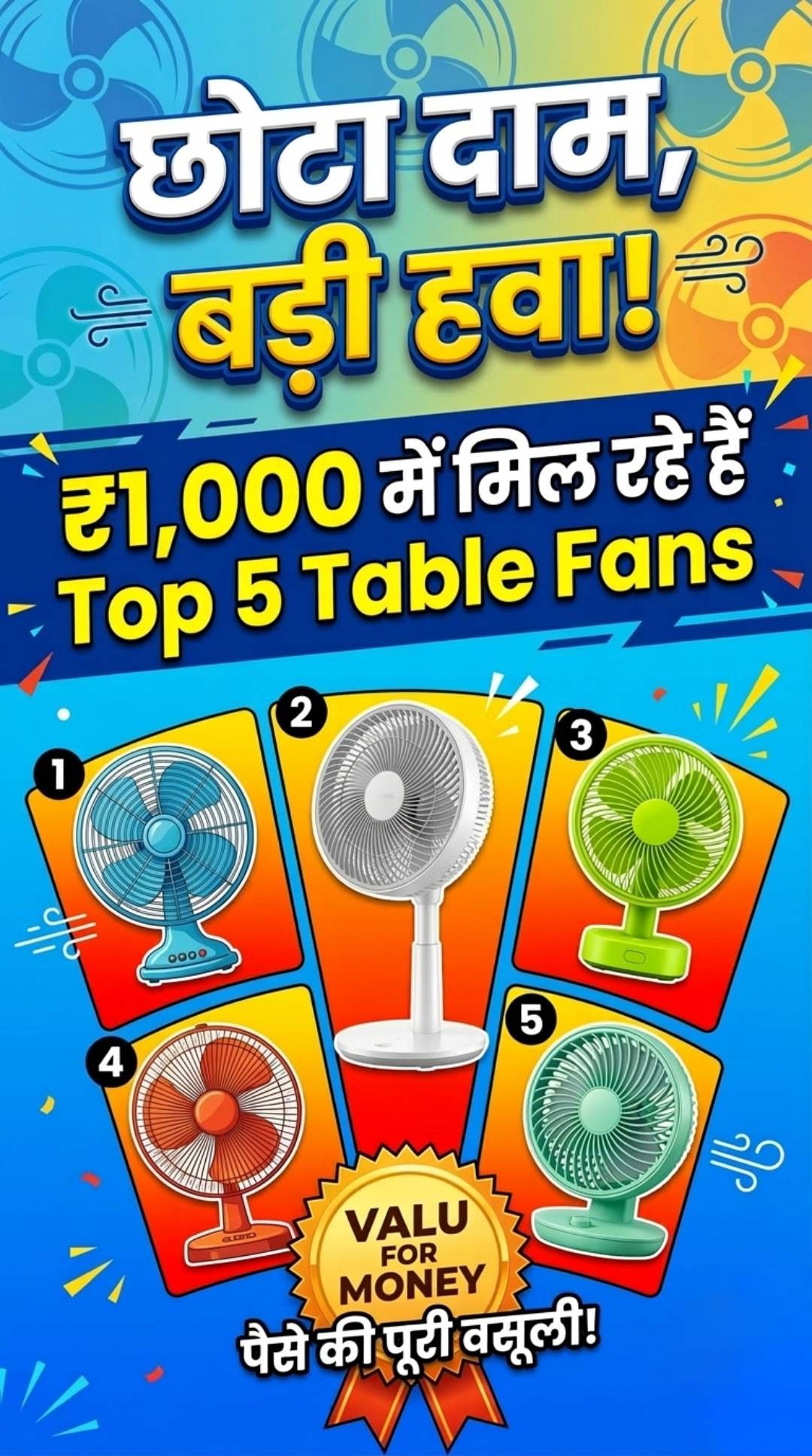 छोटा दाम, बड़ी हवा! ₹1,000 में मिल रहे हैं Top 5 Table Fans