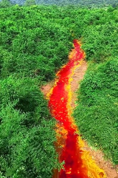 इसे देखने पर ऐसा लगता है जैसे जंगल के बीचो-बीच खून की नदी बह रही हो.