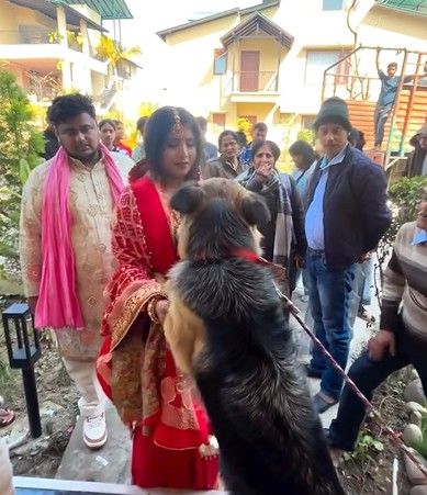 कुत्तों की आवाज सुनकर दूल्हन खुद को रोक नहीं पाईं और तुरंत वापस बालकनी की ओर लौट गईं. यह पल लोगों के दिल को छू रहा है.