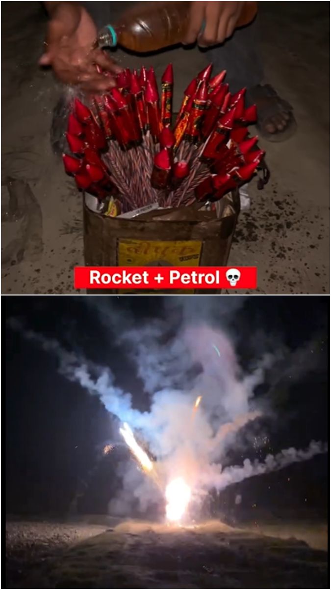 इसी तरह एक दूसरा वीडियो भी इन लोगों ने बनाया है. इसमें कई सारे रॉकेट को एक टीन में डालकर उस पर पेट्रोल डालते हैं. फिर आग लगा देते हैं.