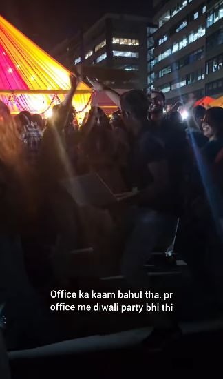 इस क्लिप को वैभव छाबड़ा ने इंस्टाग्राम पर शेयर किया है- जिन्होंने इसे कैप्शन दिया, "ऑफिस का काम बहुत था , ऑफिस पर दिवाली पार्टी भी थी. "