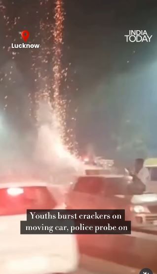 लखनऊ में चलती कार की सनरूफ पर कुछ लोगों द्वारा पटाखे जलाए जाने का वीडियो सोशल मीडिया पर वायरल हो रहा है.