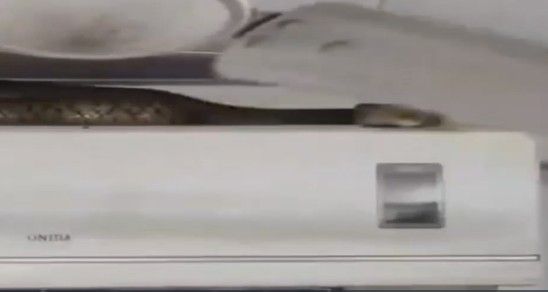 वहां एक एसी यूनिट के ऊपर बड़ा सांप आराम से बैठा हुआ दिखाई दिया
