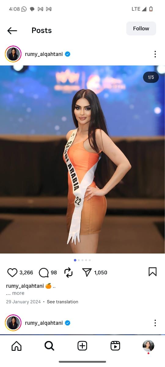 रियाद की एक मॉडल रूमी अलकाहतानी ने वैश्विक मंच पर देश का प्रतिनिधित्व किया. रूमी अलकाहतानी मिस सऊदी अरब 2021 भी रह चुकी हैं.