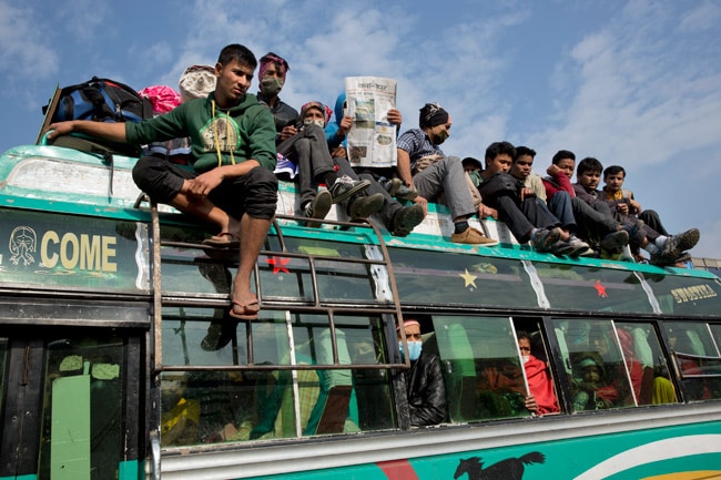 नेपाल सरकार ने भूकंप प्रभावित लोगों को उनके घर भेजने के लिए मुफ्त परिवहन सेवा की व्यवस्था की है. फोटो में ट्रैफिक जाम देखा जा सकता है.