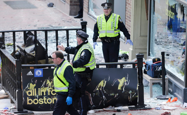 बोस्टन पुलिस ने बताया, ‘फिनिश लाइन के पास हुये धमाकों में दो लोगों की मौत हो गयी.’