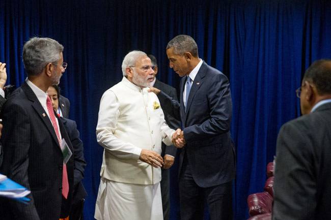 दोनों नेताओं के बीच आर्थिक संबंधों को आगे बढ़ाने, जलवायु परिवर्तन समेत विविध मुद्दों पर चर्चा हुई. मोदी और ओबामा के बीच करीब एक वर्ष में यह पांचवीं मुलाकात है. बैठक से पहले ओबामा ने मोदी की गर्मजोशी से आगवानी की और उनसे गले मिले. पिछले वर्ष मई के बाद से दोनों नेताओं के बीच यह पांचवीं मुलाकात है.