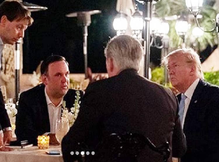 ट्रंप के खाने की तस्वीर केविन मैककार्थी ने इंस्टाग्राम पर पोस्ट की हैं. वे अपने साथियों के साथ टेबल के चारों और बैठे हुए हैं. और वे कुछ गुफ्तगू कर रहे हैं. (Photo: @repkevinmccarthy)