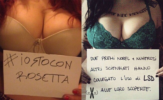 इटली में लड़कियों का एक ग्रुप है, जिसे सेल्फी का नया क्रेज चढ़ा है. ये लड़कियां और महिलाएं विज्ञान को मनोरंजक बनाने के लिए हाथों में तखती लेकर गर्व से क्लीवेज दिखाती हैं.