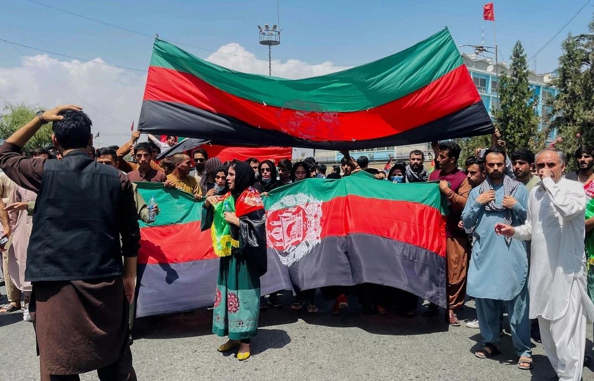 महिलाओं सहित सैकड़ों प्रदर्शनकारी काबुल में राष्ट्रीय ध्वज लहराते हुए और हमारा झंडा, हमारी पहचान के नारे लगाते हुए एकत्र हुए. तालिबान लड़ाकों ने भीड़ को तितर-बितर करने के प्रयास में कुछ प्रदर्शनकारियों को घेर लिया और उन्होंने चिल्लाते हुए हवा में राउंड फायरिंग की.