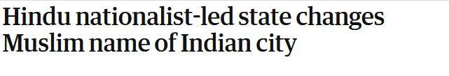 द गार्जियन की ओर से लिखा गया है कि राज्य की हिंदुत्ववादी सरकार ने शहर का नाम इस वजह से बदल दिया क्योंकि यह मुस्लिम नाम था. और इसे मुसलमान शासक द्वारा ही दिया गया था.
