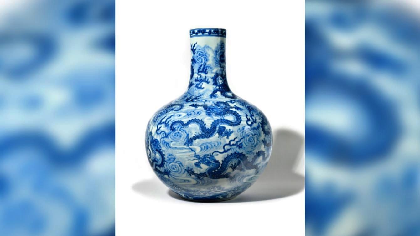 नीले और सफेद रंग के Tianqiuping फूलदान की कीमत नीलामी में वास्तविक दाम से कई हजार गुना ज्यादा लग गई. फूलदान का धड़ गोलाकार है और गर्दन बेलनाकार. ये किसी सुराही जैसा है. इस पर बादल और ड्रैगन की कलाकृति बनी है.