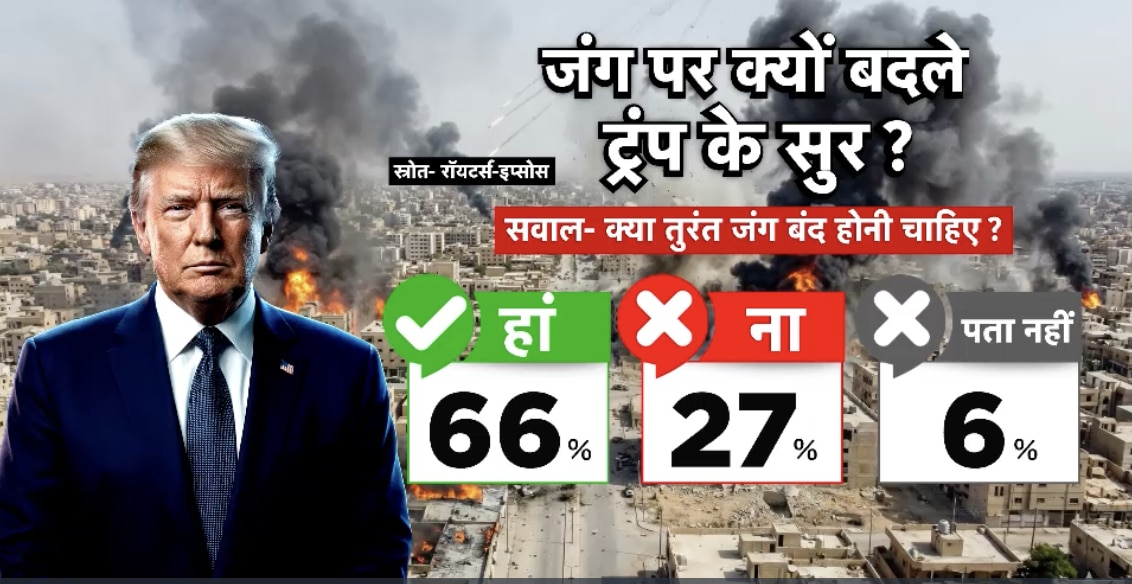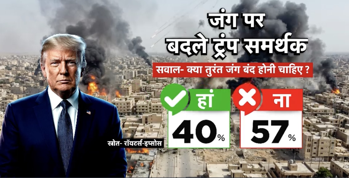 सबसे बड़ी बात ये है कि ट्रंप के रिपब्लिकन समर्थकों में से भी 40 फीसदी लोग तुरंत जंग खत्म करने के पक्ष में हैं, भले ही अमेरिकी लक्ष्य पूरे न हों. वहीं 57 फीसदी समर्थक लंबे समय तक युद्ध में बने रहने के पक्ष में हैं.