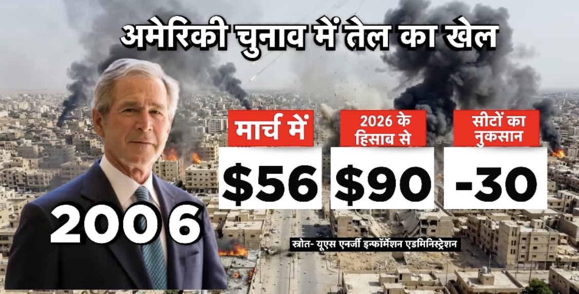 साल 2006 में जॉर्ज बुश के राष्ट्रपति रहते तेल की कीमत मार्च में 56 डॉलर प्रति बैरल तक पहुंच गई थी, जो आज के हिसाब से करीब 90 डॉलर के बराबर है. इसका खामियाजा बुश को 30 सीटें गंवाकर उठाना पड़ा.