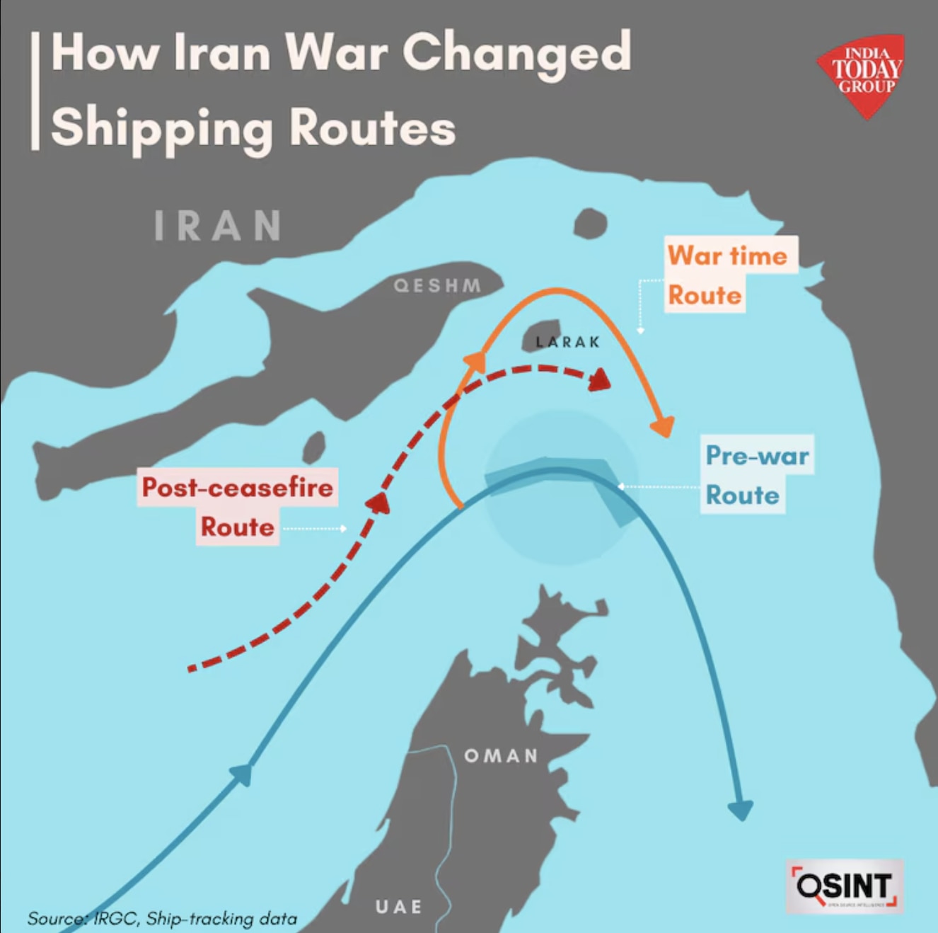 जब अमेरिका और ईरान के बीच जंग जैसे हालात बने, तो ईरान ने इस रास्ते को अपने हिसाब से चलाना शुरू कर दिया. पहले ईरान ने जहाजों को Qeshm और Larak द्वीप के बीच के रास्ते से गुजारना शुरू किया.