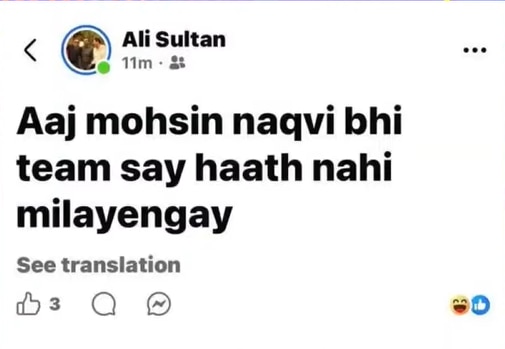 पाकिस्तान की मीडिया में हैंडशेक न करने को लेकर खूब बातें कही जा रही हैं और कहा जा रहा है कि पाकिस्तान का नसीब ही खराब है. पाकिस्तान में अपने खिलाड़ियों को ट्रोल करते हुए कई मीम्स भी चल रहे हैं जिनमें से एक यह है कि- आज मोहसिन नकवी (पाकिस्तान क्रिकेट बोर्ड के अध्यक्ष) भी टीम से हाथ नहीं मिलाएंगे.